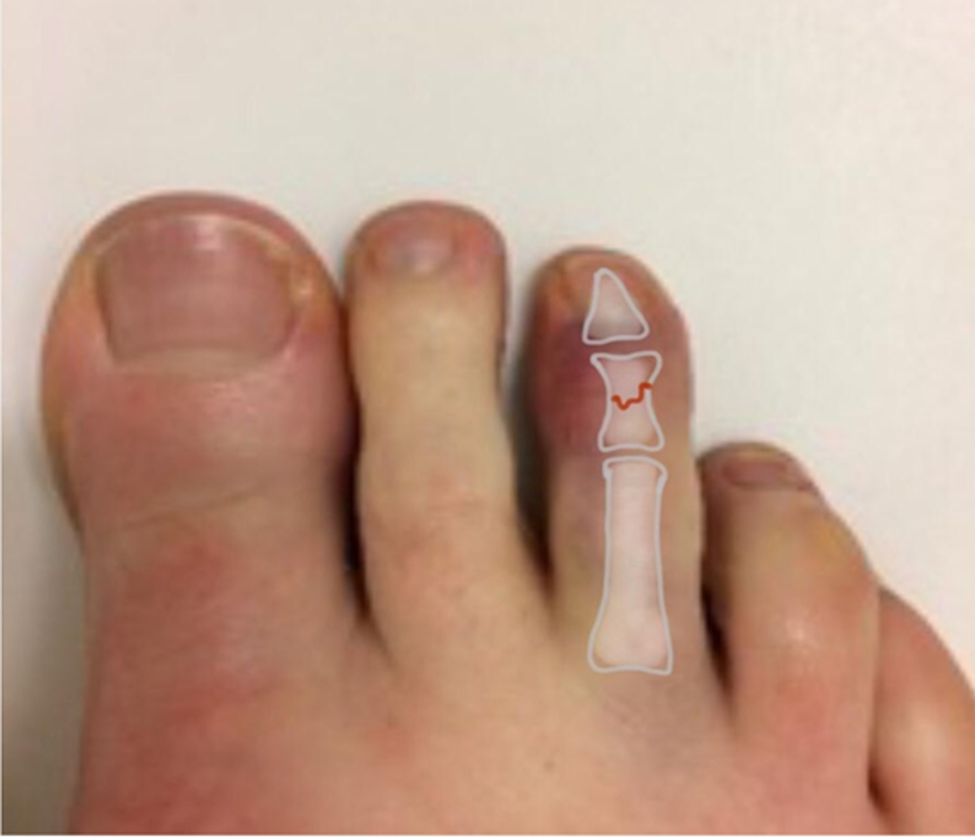 - U heeft een breuk in het kootje van uw teen.