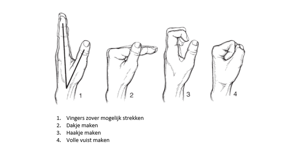 - Vingers zo ver mogelijk strekken.