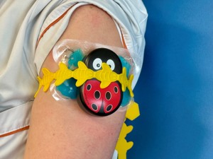 De Buzzy is een hulpmiddel in de vorm van een bij of lieveheersbeestje. Het heeft koude pads in de vorm van vleugels en trilt. Dit zorgt voor afleiding en helpt de pijn te verminderen tijdens handelingen zoals injecties.