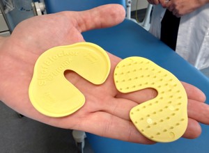 De Shotblokker is een geel plastic plaatje dat op de huid wordt geplaatst voordat er een prik wordt gegeven. De kleine uitsteeksels helpen om de prik minder pijnlijk te maken.