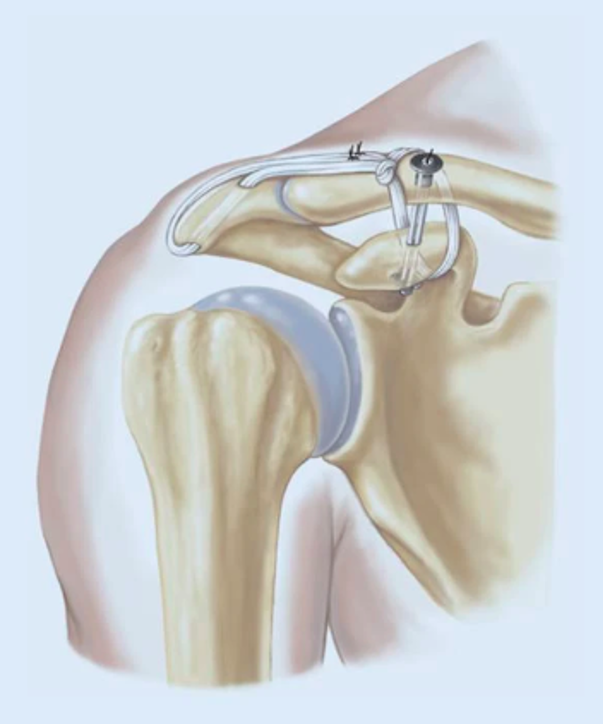 Daarna wordt er een huidsnede gemaakt in de lengte over de schouder en het sleutelbeen. Het sleutelbeen wordt met behulp van uw eigen hamstring pezen en hechtdraad weer vastgezet aan het schouderblad.