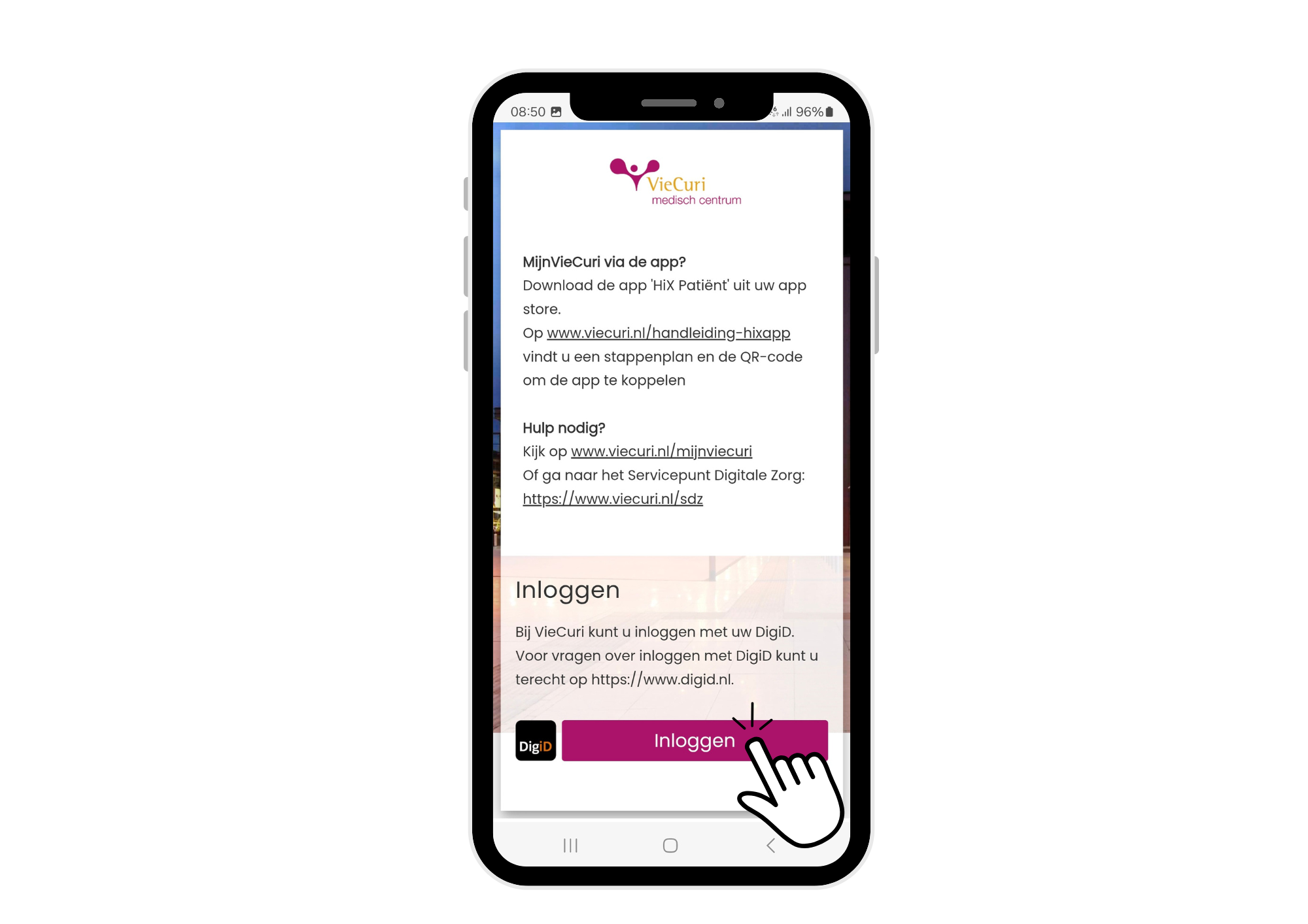 DigiD is uw Digitale Identiteit. Het systeem, opgezet door de overheid, helpt om online uw identiteit te verifiëren, vergelijkbaar met een digitaal paspoort. Voor toegang tot MijnVieCuri heeft u een DigiD nodig. Dit geldt ook voor het eenmalig inloggen in de HiX patiënt app. Deze extra stap beschermt de privacy van uw medische gegevens. Met uw DigiD kunt u veilig inloggen op overheidswebsites en in zorggerelateerde systemen.