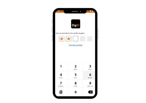 - Open de DigiD-app op uw mobiele apparaat en voer uw 5-cijferige pincode in (deze heeft u gekozen bij het installeren van de DigiD-app).