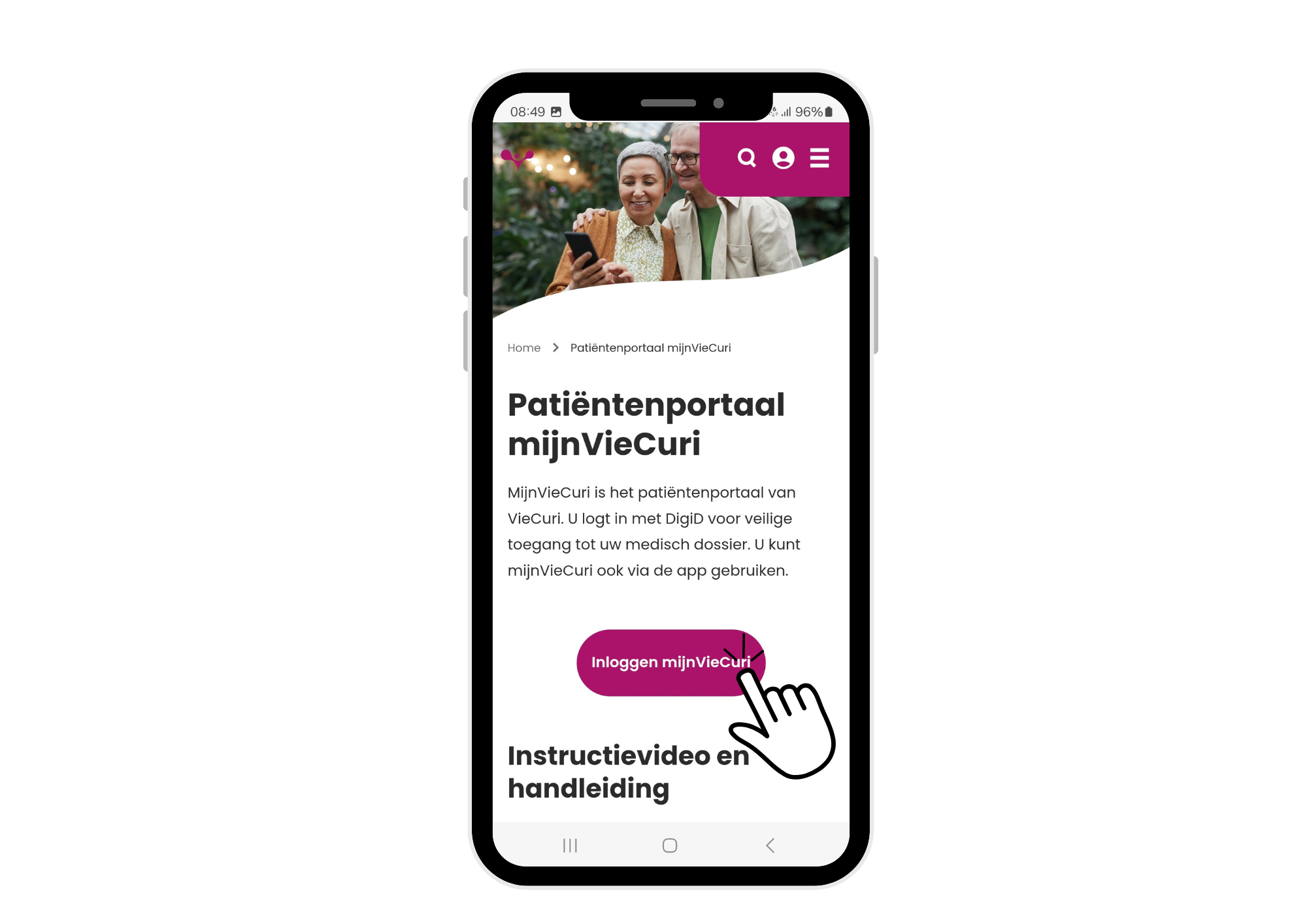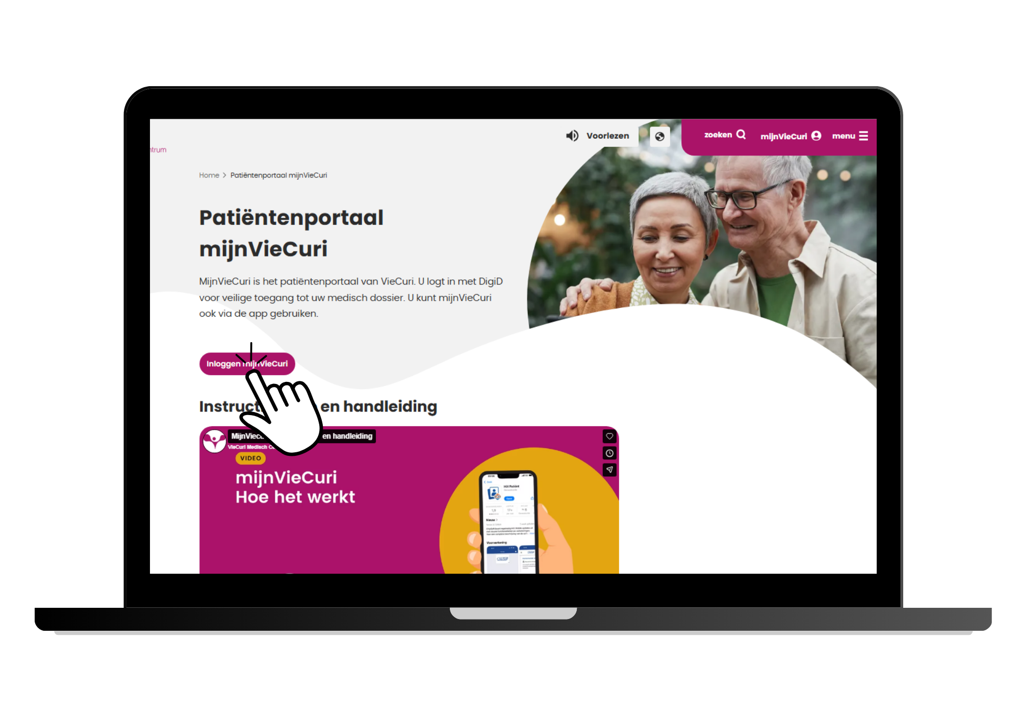- U bevindt zich nu op de informatiepagina over mijnVieCuri. Hier vindt u o.a. een instructievideo en de handleiding van MijnVieCuri.