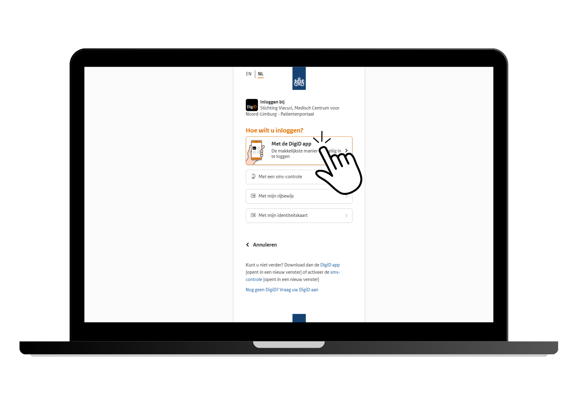 - U kiest vervolgens 'Met de DigiD app'.