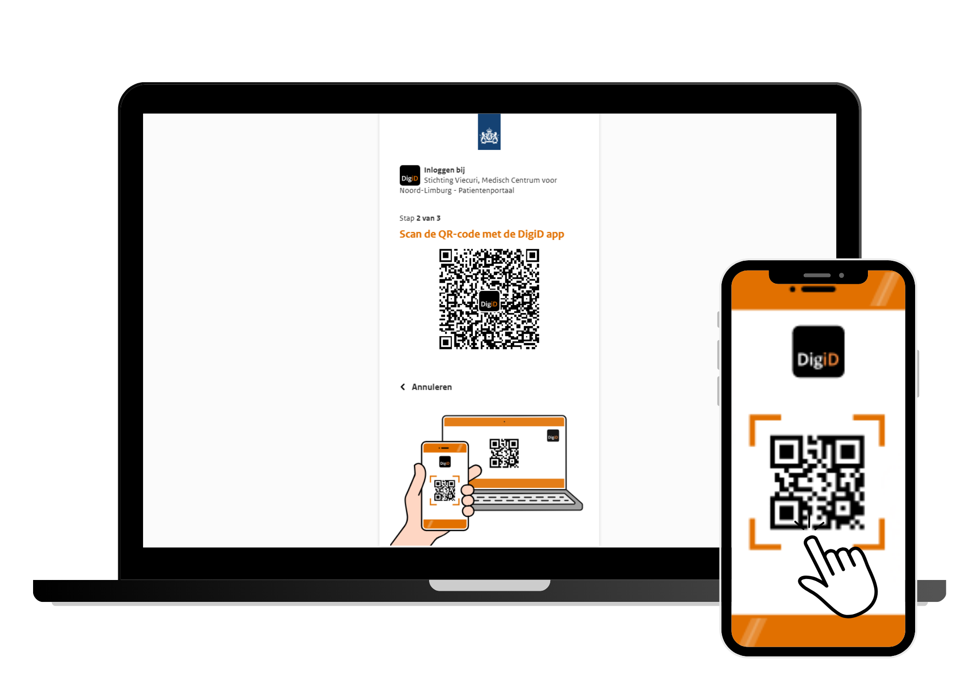 - Er verschijnt een QR-code. Deze scant u met uw DigiD app.