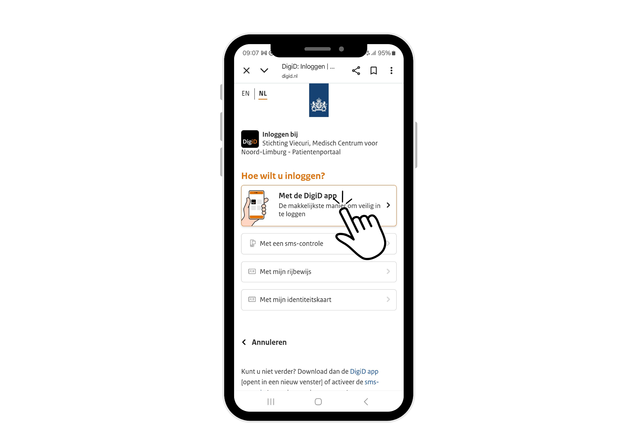 Inloggen met DigiD app op uw mobiel