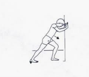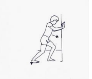 - Ga met uw gewicht naar voren richting de muur en zet uw gewicht op uw achterste been.