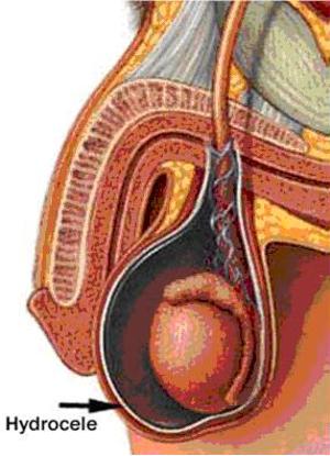 (hydros = water, cele = holte). Een hydrocèle komt vaak voor.