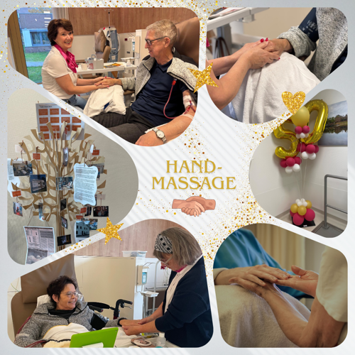 Een van de eerste activiteiten die werd georganiseerd, was een handmassage voor de patiënten. Vrijwilligers boden een moment van ontspanning en aandacht, wat voor velen een welkome afleiding was tijdens de lange dialysesessies.