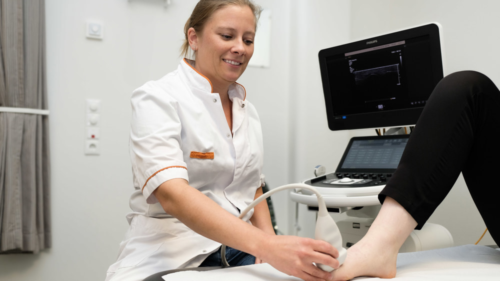 VieCuri heeft een jichtspreekuur, Eric is er onder behandeling bij Tanja Giesen. Zij is physician assistent Reumatologie en neemt veel medische taken over van de reumatoloog. “Ik stel de diagnose, maak een behandelplan en schrijf medicijnen voor. Ook voer ik puncties uit om vocht uit het gewricht te halen voor onderzoek”, vertelt ze. “Jicht ontstaat meestal in de dikke teen, maar kan ook in alle andere gewrichten, zoals de knieën en handen, voorkomen. In sommige families komt meer jicht voor dan in andere, maar jicht kan ook komen door bepaalde voeding of door een verminderde nierfunctie. Het is overigens geen ouderdomskwaal, we zien op het spreekuur ook twintigers met jicht.”